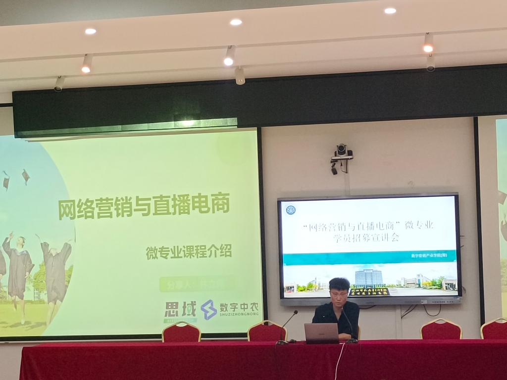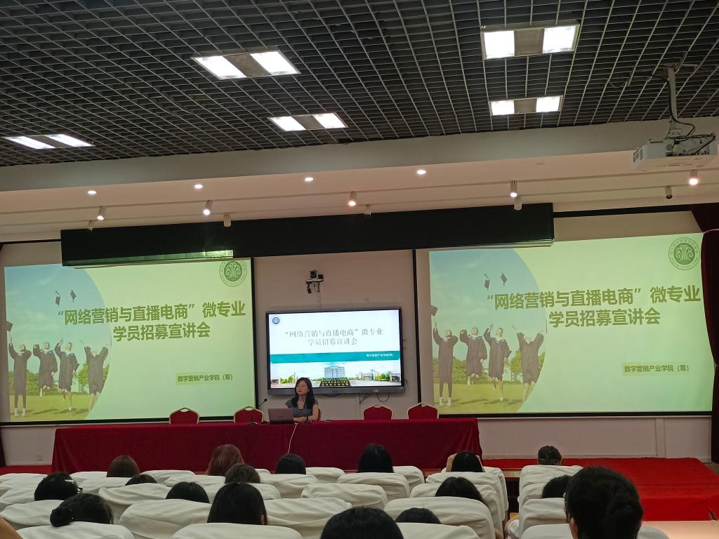 为顺应电商行业发展趋势,拓宽我校学子专业选择与职业发展路径,满足市场对网络营销与直播电商专业人才的需求,6月16日,我校在旗山校区3-2018教室成功举办2025级“网络营销与直播电商”微专业学员招募宣讲会,活动由教务处牵头、通识教育学院(三创学院)主持,数字中农科研院(福建)有限公司企业代表、旗山校区100多名学生参加此次活动。