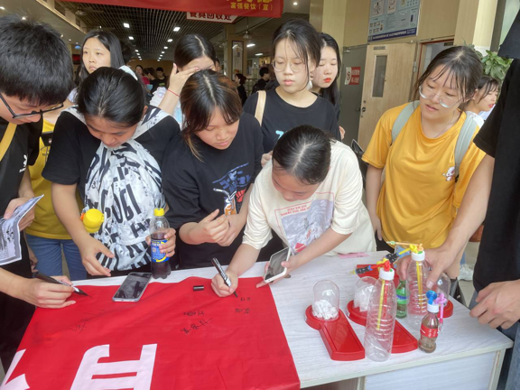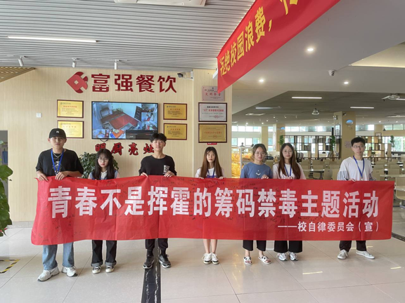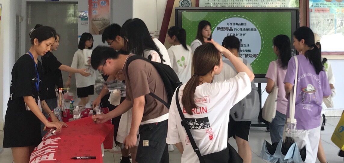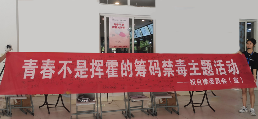 此外,工作人员还在教学楼、宿舍楼、图书馆等地分发讲解禁毒传单,传播禁毒知识,增强师生的禁毒意识,提高自觉抵制毒品的能力。我校师生均表示将以最大决心、最强力度、最严措施,始终保持对毒品的“零容忍”。最后,师生在“青春不是挥霍的筹码”横幅上进行签名。