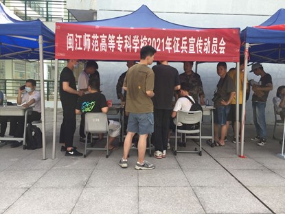 为深入贯彻落实习近平强军思想,推动国防动员和后备力量建设高质量发展,激发广大青年参军报国热情。6月10日下午,我校于仓山校区青春广场开展了2021年征兵宣传动员会。永泰武装部连参谋、仓山校区办张贵良科长、就业科林育山科长及有参军意愿的同学参加本次活动。