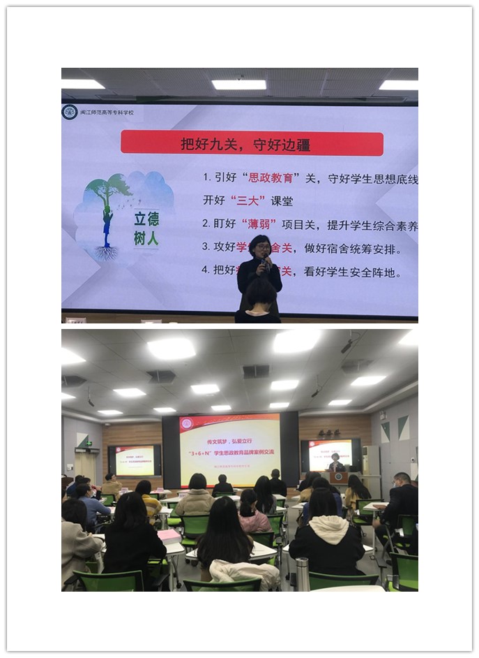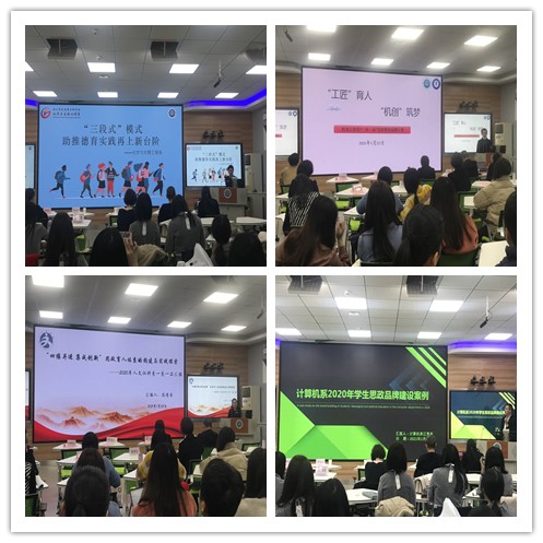 论坛上,各系部针对系部文化特色,结合学生特点,进行学生思政品牌建设案例交流。机电系分享了“‘工匠’育人,‘机创’筑梦”为主题的思政教育品牌情况;人文社科系汇报了“四维并进 集成创新”思政育人体系的构建与实践探索概况;初教系分享了“生命之光 ,‘爱’为底色”师范生生命教育的建构的探索;外语系分享了“三位一体,内外联动,多元包容”____“TIM”育人工程的实践;计算机系分享了“两式两精”学生思政品牌建设思考;艺术系分享了“以形传神,形神兼备”为主题的学生思政品牌汇报;化工系分享了“三段式”教育模式,助推德育实践再上新台阶;学前系分享了“实施‘四大工程’, 培育‘五心’学生”学生思政品牌探索。