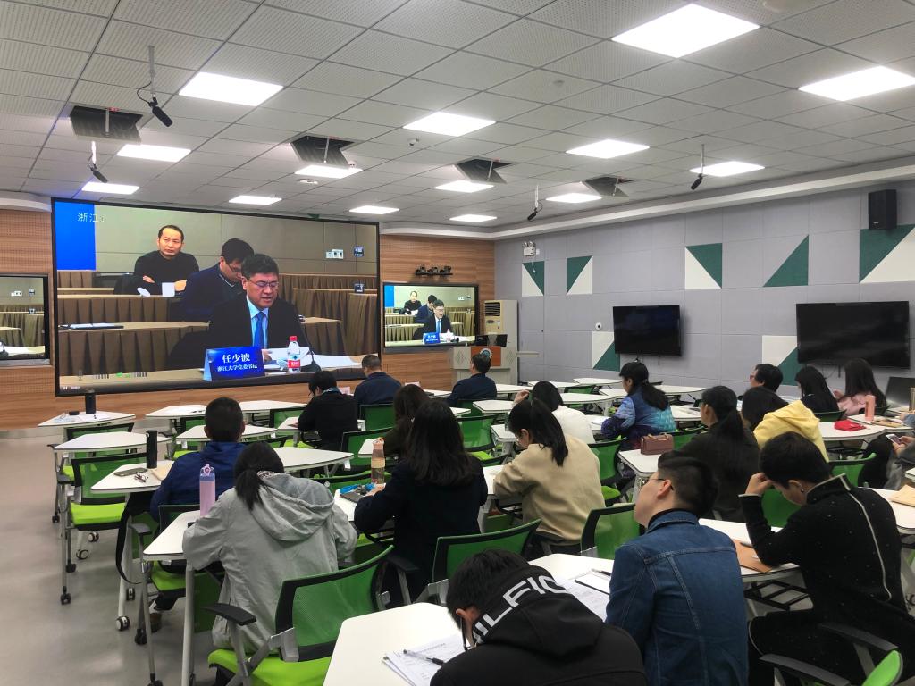 我校在教学楼3016智慧教室组织观看了此次视频会议。校林贤校长,黄耀荣副校长,学生处、教务处、保卫处负责人,招生、就业、资助中心职能部门负责人,院系主要负责人、党总支副书记及全体毕业班辅导员等40余人参加会议。