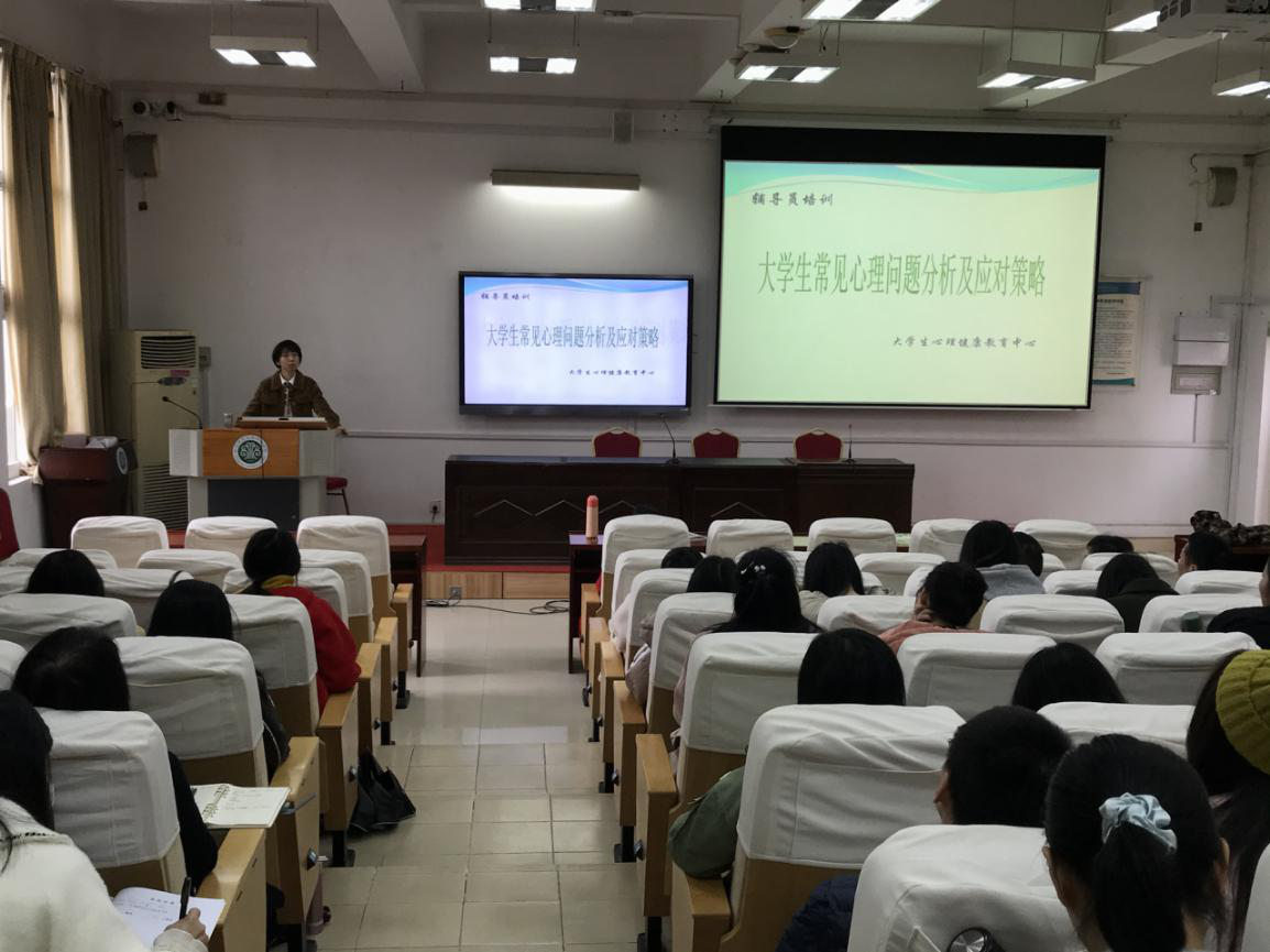 为帮助辅导员掌握学生心理问题识别和干预技能,提高开展心理健康教育工作的能力和水平,12月23日,我校组织辅导员开展《大学生常见心理问题的鉴别与干预》培训,由学生处副处长郭静静主讲。