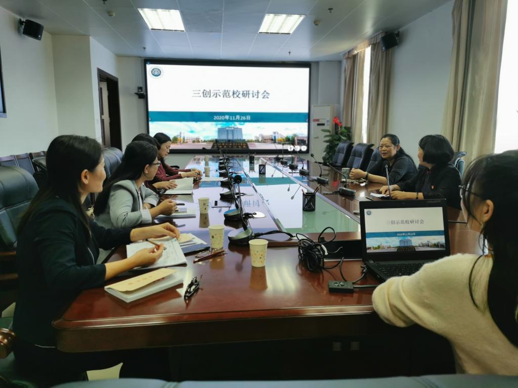 最后,林旻副校长肯定了大家在“三创”示范校材料收集过程中的努力,同时强调了“三创”示范校工作的整体报告需要大家在收集好材料的基础上,再进一步提炼文字,互相配合,严格按照要求与对应的时间节点,提交相关材料,确保“三创”示范校工作任务顺利完成。