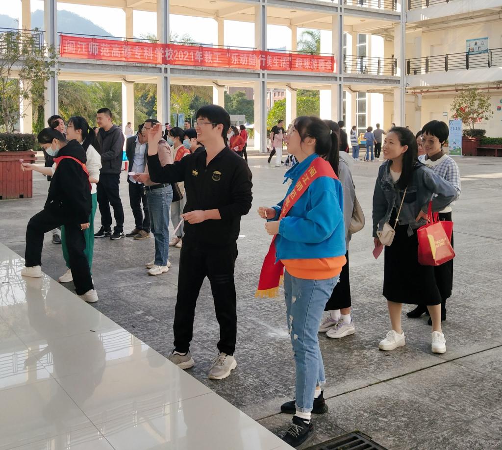 运动会进行的同时,旗山校区实训楼空地,“乐动健行美生活”趣味游园会也在如火如荼地开展。教师们积极参加游园项目,在欢乐愉快的气氛中实现强身健体的目的。