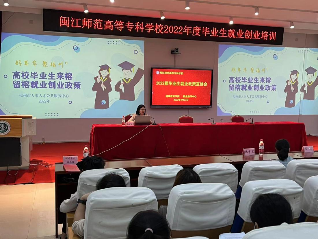 为贯彻落实《教育部办公厅关于开展2022 年高校毕业生就业创业政策宣传月活动的通知》(教学厅函〔2022〕7 号)和《福建省人力资源和社会保障厅办公室关于开展“公共就业服务进校园”活动的通知》(闽人社办〔2022〕23号)文件精神,我校就业指导中心携手校继续教育学院和福州市人事人才公共服务中心开展2022届毕业生就业创业政策宣讲暨供需见面会。本次活动毕业班辅导员、各学院2022届应届毕业生共300余人参加,5家福州市企业到场宣讲、招聘。