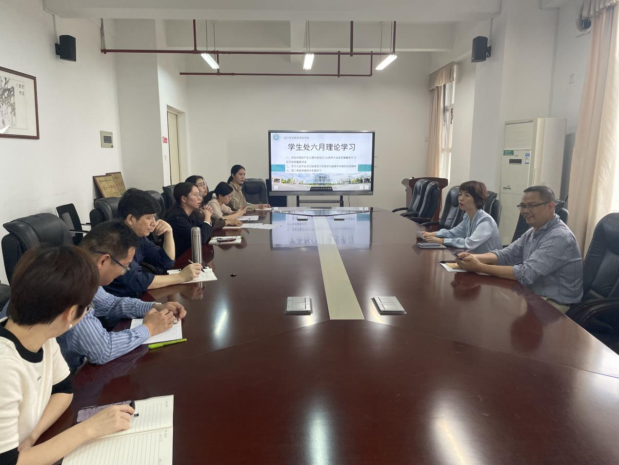 6月9日,我校学生处全体职工于综合楼会议室集中学习中国共产主义青年团成立100周年大会上习近平发表的重要讲话、习近平总书记给南京大学留学归国青年学者的回信精神、第二季度师德师风专题学习教育部公开曝光第九批7起违反教师职业行为十项准则和纪检监察机关紧盯端午节点通报典型案例。