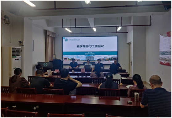 会上,陈胜副处长就新学期迎新工作进行具体全面部署,确保疫情防控、迎新准备、新生宿舍安排,新生入学教育,军训工作,报到注册等工作顺利进行。