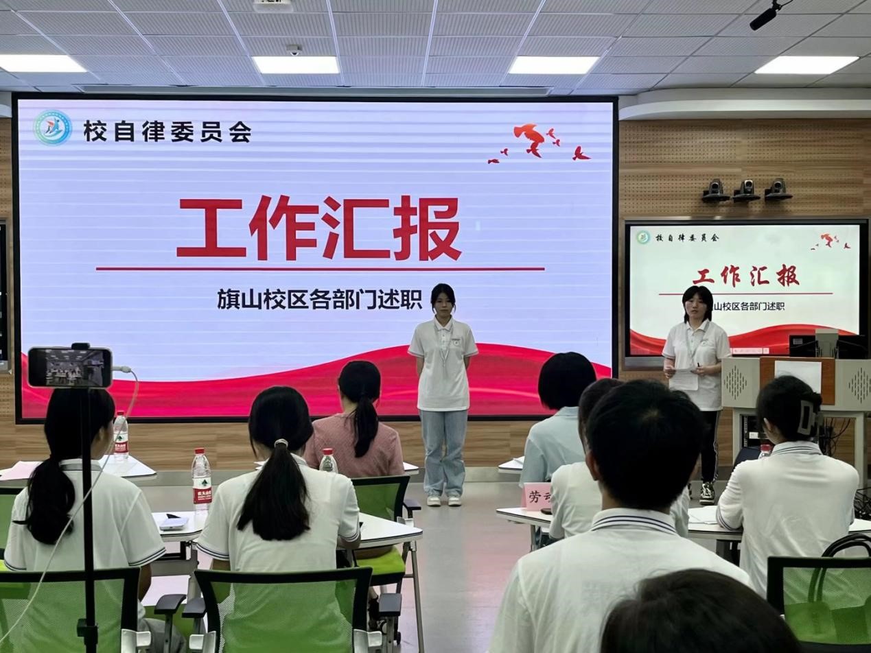 本次活动分别在三校区设置分会场,以线上连线、线下观看加评议组提问的方式开展,回顾校自律委员会2022年9月至2023年6月的发展情况,并对一年来会长团以及各部门的工作进行述职评议。