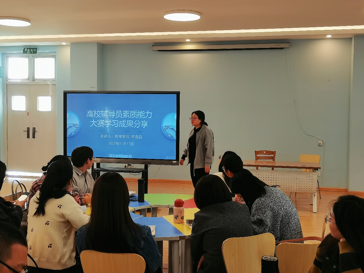 数字信息工程学院辅导员李晶晶老师围绕高校辅导员素质能力大赛学习成果进行分享,从大赛基本情况、赛项解读、备赛建议等三方面展开,重点突出谈心谈话、案例研讨的要点、思路、应对技巧等,此次交流对辅导员备战素质能力大赛有着积极的指导意义。