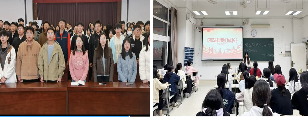 12月4日上午,学生处组织各学院通过线上线下相结合的方式,同步跟随主会场参加升旗仪式、宪法晨读、齐唱《宪法伴我们成长》歌曲、观看第八届全国学生“学宪法讲宪法”活动全国总决赛优秀选手展演等活动,着力培育学习宪法、尊崇宪法的校园法治文化。