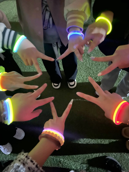 在猫鼠追逐环节中,成员们通过猫鼠的不同角色扮演,利用手机定位和荧光手环标识进行藏匿、寻找和追逐。环节惊险刺激,沉浸度极高。各成员结伴同行,充分发挥了团队协作精神。