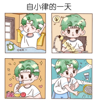本次比赛以校自律委员会的卡通IP形象“自小律”为创作主体,用漫画日记的形式对自小律一天中值得记录的故事展开自己的想象和创作,用画笔传递出健康向上的生活态度。