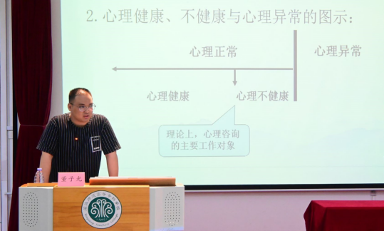 接下来,福州市第二总医院心理治疗师董子光老师进行了题为《常见心理问题的识别及压力应对》的讲座。董老师为同学们介绍了一些心理问题的识别方式以及应对办法,让大家对心理健康和情绪调节的方法有了更深刻的了解。