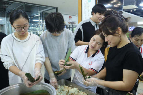 为了让学生真切感受中国传统节日的深刻内涵,学校组织同学们开展包粽子实践活动,同学们在工作人员的指导下,纷纷挽起袖子,亲自动手包起了粽子。翠绿的粽叶在同学们手中翻飞,一个个形状各异的粽子便呈现在眼前。在包粽子的过程中,同学们亲身体验端午节的独特习俗,也进一步锻炼了同学们的动手能力和学习能力。