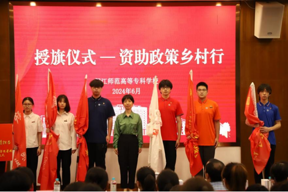 为保障我校资助政策乡村行活动顺利开展,校学生处提前规划,精心部署,并且召开资助政策乡村行动员大会,旨在统一思想,凝聚共识。校学生处处长郭静静为资助乡村行志愿服务队伍进行授旗,她鼓励志愿者们以扎实的学识为基础,以饱满的精神为动力,全身心投入到资助政策的宣传与服务工作中。