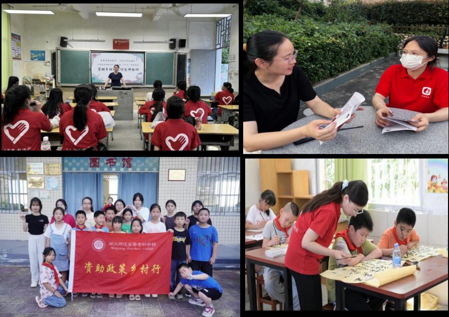 小学教育学院结合“三下乡”志愿服务活动,在闽侯县大湖乡开展了“助学筑梦,向光而行——资助政策乡村行”国家资助政策宣传活动。小学教育学院学子发挥专业优势, 围绕朗诵、书法、简笔画、音乐、舞蹈、军体拳、手工、生物科普等内容精心设计课程,以政策宣讲、美育课堂等活动形式,开展国家资助宣传活动,国家资助政策的宣传不仅是一次知识的传播,更是一场心灵的洗礼,带来了温暖和希望。小学教育学院的学子们用实际行动诠释了责任与担当,迈出了一步步助力乡村教育发展的坚定步伐。他们的努力不仅提升了当地孩子们的美育素养,也加深了居民对国家资助政策的理解,传递了无尽的关爱与希望。