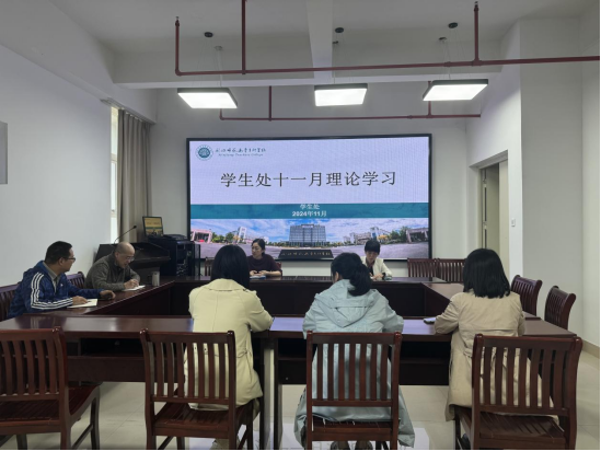 11月26日下午,我校学生处全体教职工在综合楼党员活动室开展理论学习会,会议由郭静静处长主持。本次学习围绕党的二十届三中全会精神、习近平总书记近期重要讲话等内容展开。
