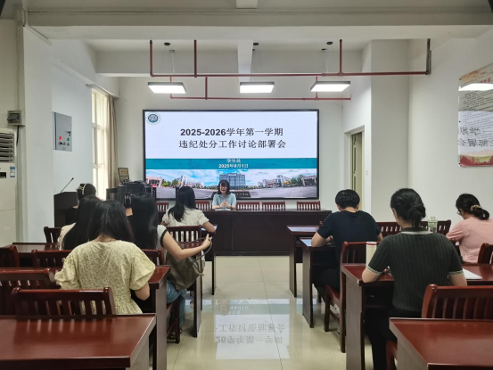 违纪处分方面,黄玮老师围绕违纪处分工作事宜展开说明,重点规范了违纪处分材料的提交流程,明确新学期的工作重点将是规范处分材料管理和加强学风建设,强调违纪处分工作必须严格按照学校规章制度执行,确保每一份处分材料在事实认定、程序流程及结果判定上均做到准确无误、规范严谨、公平公正,坚决维护制度的严肃性与权威性。同时建议进一步加强与学生的常态化沟通,强化前置性教育引导,通过案例讲解、规则宣讲等方式,帮助学生深刻理解学校规章制度的意义与要求,共同营造并维护风清气正、秩序良好的校园环境。