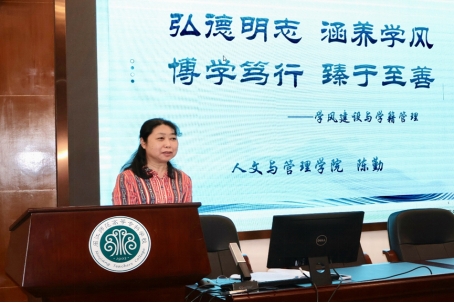 陈勤院长以“弘德明志 涵养学风;博学笃行 臻于至善”为主题,为学院2025级新生带来开学第一课。课上,陈勤指出,优良学风需以“明德”为根基,鼓励新同学汲取优秀青年的榜样力量,涵养治学精神,自觉追求知识、锻炼能力、塑造品格;同时结合学籍管理细则,从学分修读、课程考核、行为规范等方面明确要求,提醒新同学应以“笃行”的姿态完成从中学到大学的角色转变。