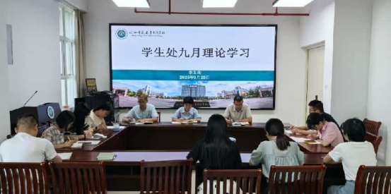 9月25日下午,学生处全体教职工在明德楼党员活动室召开九月理论学习会,专题学习习近平总书记近期有关重要讲话重要指示批示精神及中央重要会议精神。