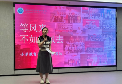 小学教育学院22级小学语文教育1班的王依婷同学,结合参加省创新创业大赛并获奖的经历,向大家娓娓道来她在大学生涯中的精彩故事与收获。她不仅分享了自己在创新道路积累的经验,还倾囊相授了考证的小窍门,以此激励同学们勇往直前,勇于实现个人价值,在青春的岁月里探寻生命的意义。