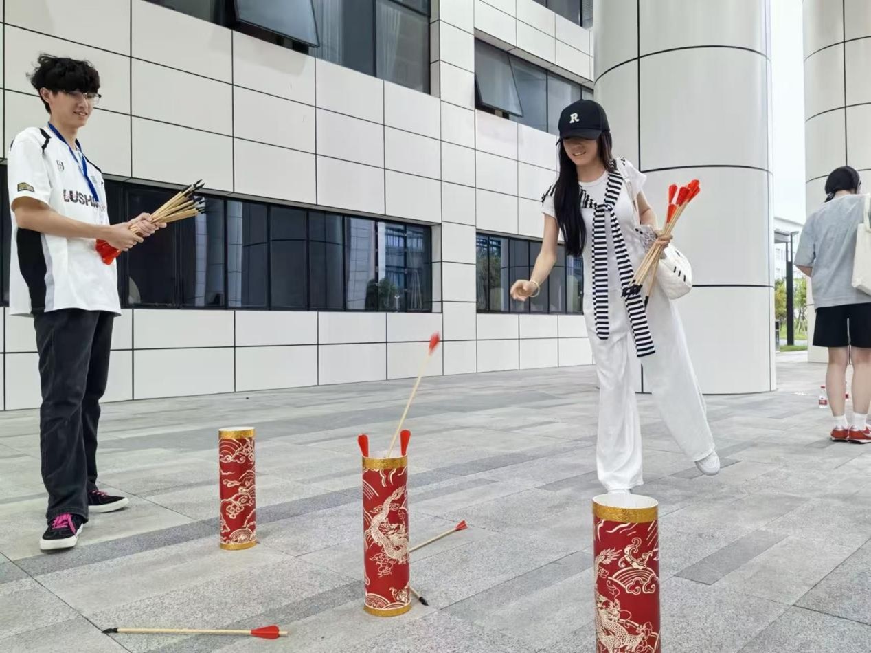 本次游园会围绕 “传统趣味” 核心,精心设置了四大互动环节:既有承载古人雅趣的 “投壶”,让师生在抬手投箭间触摸传统文化;也有充满童年回忆的 “套圈”,圈圈投掷间满是欢声笑语;“猜灯谜” 环节更巧妙融入外语元素,谜面兼顾经典诗词与外语词汇,既考验智慧又贴合学院特色;“筷运珠连” 则以轻巧考验手眼协调,让大家在专注与协作中收获乐趣。