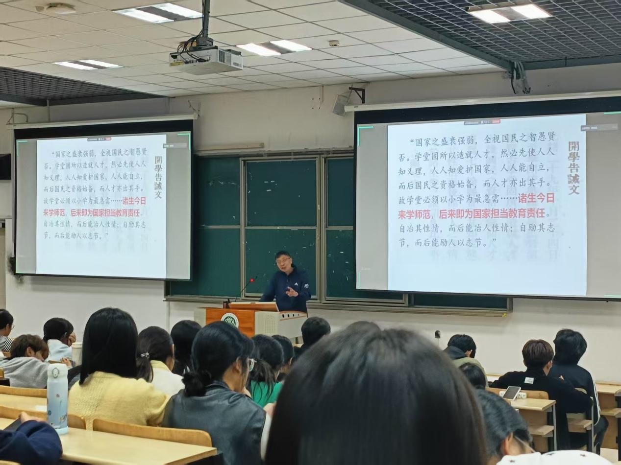 为增进2025级新生对学校的认同感与归属感,传承我校优良办学传统,弘扬校园文化精神,外语商贸学院于10月28日晚上6:00在1014教室和3018教室举办校史校情教育讲座。本次活动特邀福建省特级教师,原福州师范学校副校长,闽江师专原科研处处长,闽江师专关工委副主任,离退休教师协会副会长姚翔老师担任主讲人,外语商贸学院2025级全体新生参加。
