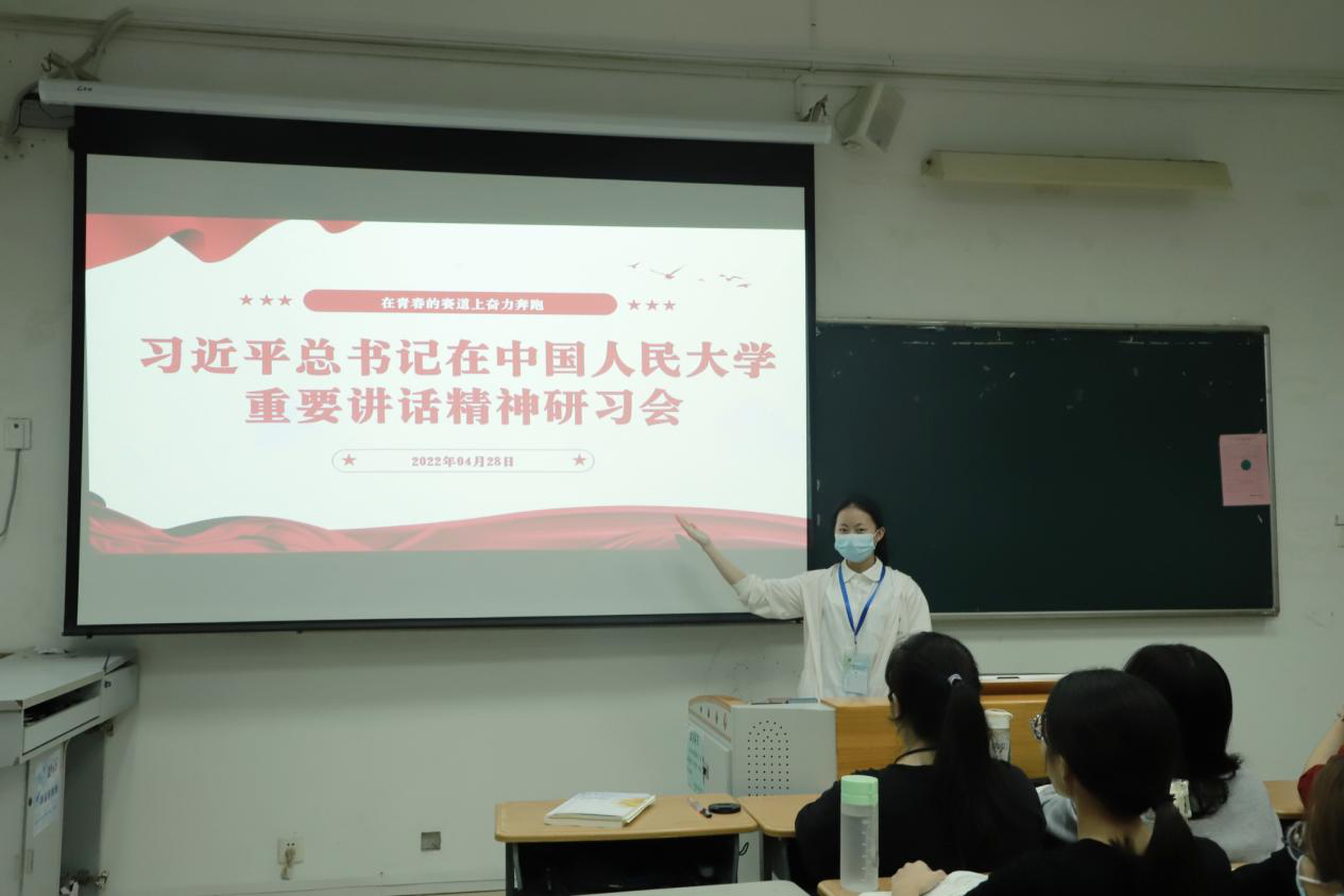 在五四青年节即将到来之际,中共中央总书记、国家主席、中央军委主席习近平4月25日上午到中国人民大学考察并发表重要讲话。我校团委立足实际工作,在落实疫情防控要求的前提下,第一时间组织专题学习、动员广大青年学子开展新闻联播等相关报道、集体研讨等多种学习活动,交流感想体会,认真学习习近平总书记重要讲话精神。