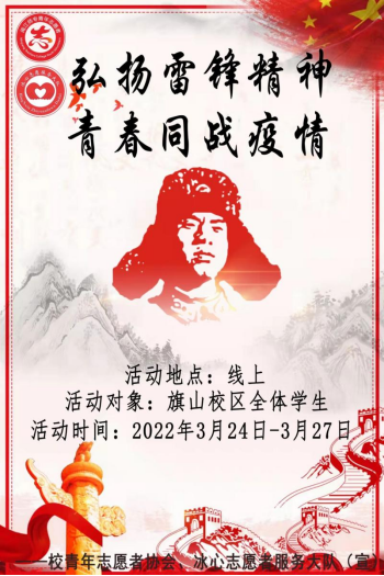 为在疫情防控中凝聚起强大的精神力量,促使广大学子重温雷锋精神、感受雷锋力量,进一步弘扬雷锋精神。3月24日到4月4日期间,校团委青年志愿者协会、冰心志愿者服务大队面向旗山校区全体师生开展了以“弘扬雷锋精神,青春同战疫情”为主题的视频剪辑比赛。