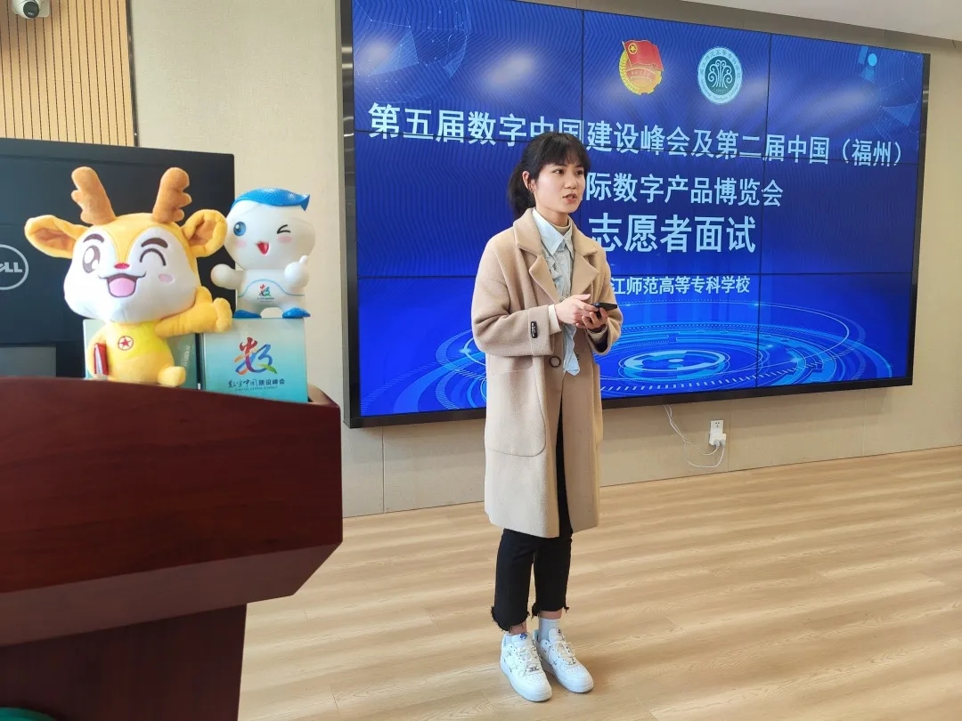 为高水平做好第五届数字中国建设峰会志愿服务工作,我校认真贯彻落实团市委和组委会部署要求,选拔优秀的青年志愿者,参与峰会志愿者组的宣传工作。2022年2月28日,闽江师范高等专科学校“第五届数字中国建设峰会及第二届中国(福州)国际数字产品博览会”志愿者面试活动在闽江师范高等专科学校附属小学五楼报告厅举行。校团委副书记黎凤、校团委林彬老师出席活动。