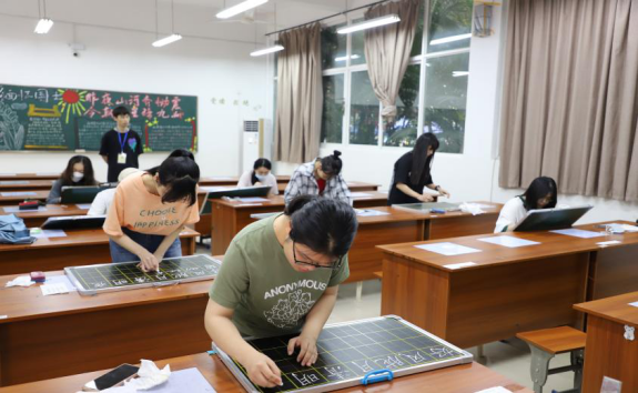 本次三笔字大赛历时一个月,分为师范生与非师范生两个赛道,初赛以线上形式开展,经过初赛的激烈角逐,共有61位选手进入决赛。决赛场上,选手们个个聚精会神,方寸之间,手书“清明”诗文,或笔势雄奇、遒劲有力,或娟秀灵动,或行云流水、洋洋洒洒,或藏巧于拙,尽显性情,或清晰工整、大方干净。选手们在三笔字大赛这个以书会友、展现书法风采的舞台上尽情展现着青年朝气。一位参赛选手表示,虽然自己的毛笔水平不高,但是很感谢有这样一个舞台,让自己能和大家有一个交流的机会,也在这次三笔字大赛中受益匪浅。