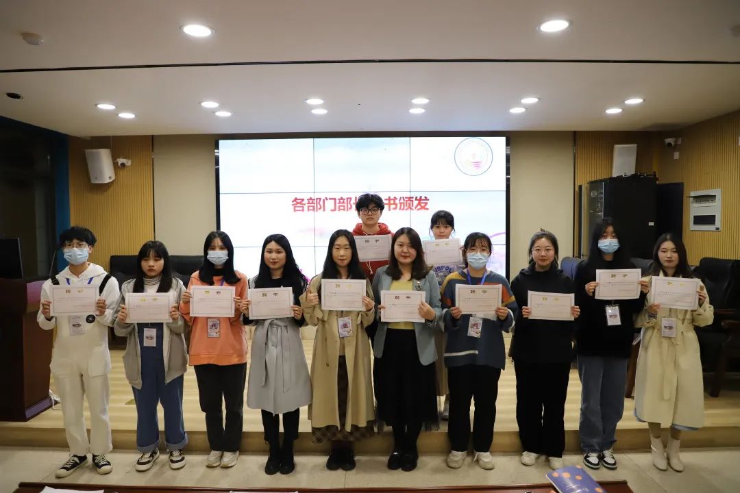 本次会议分别由黄奕、刘亦舒主持,会议在两位主持人致开场词后顺利开幕。本次大会共四个流程。首先,全体起立奏唱团歌;其次,由学生会执行主席张雨晨作以《坚持知行合一,勇担时代使命》为题的述职报告,从工作回顾和工作展望两个角度展开叙述;随后,竞选开始,由校团委老师及在场的各位学生干部共同评选部长团,每轮的每位竞选者轮流上台发言,他们对校团委老师、学长学姐及小伙伴们的帮助和包容表示感谢,也谈了自己在工作中的收获和感想,通过阐述自己的竞争优势为竞选赢得支持,并表示未来矢志愈加严格要求自己,为发挥学生干部代表学生、服务学生的功能殚精竭虑。如同青年志愿者协会红十字会曾熙提到:“彼方尚有荣光在”,对于竞选者来说,本次竞选既是对自己一直以来的工作的自信和阶段性总结,也是对自己的未来工作予以更高标准的要求。