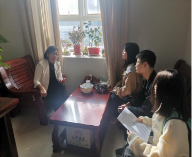 张信容教授(左一)与冰心读书会品牌部学生代表亲切交谈