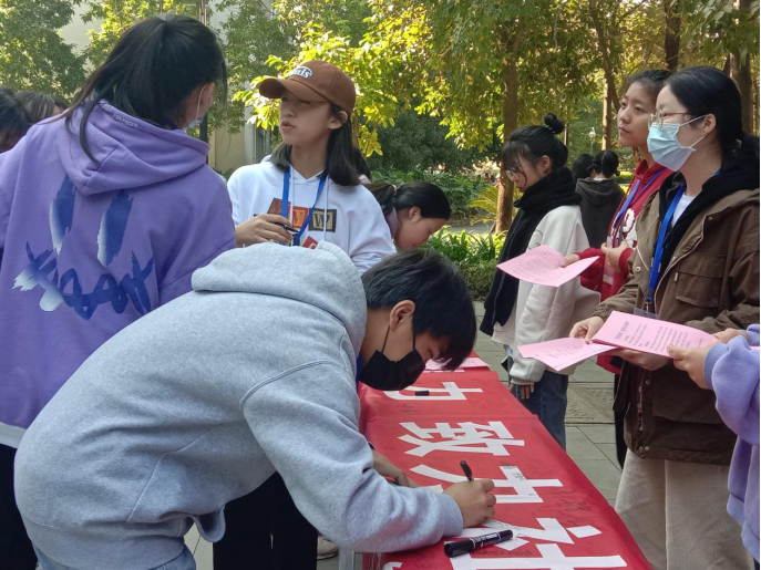 本次活动采取线上与线下结合的方式,以宣传反暴力作为主要内容。活动现场,工作人员恪尽职守,分发宣传资料、拉横幅。我校师生积极参与,签名、领取宣传资料并阅读,认真学习暴力的概念、危害以及该如何维护权益,也更加懂法、守法。线上活动群里,同学们在活动结束后踊跃发表关于反暴力的感悟,提倡反对暴力,一方面鼓励受到暴力伤害以及明知他人受到暴力伤害却依然选择作为旁观者的人们拒绝沉默、勇敢发声,另一方面,也起到了警醒施暴者的作用。