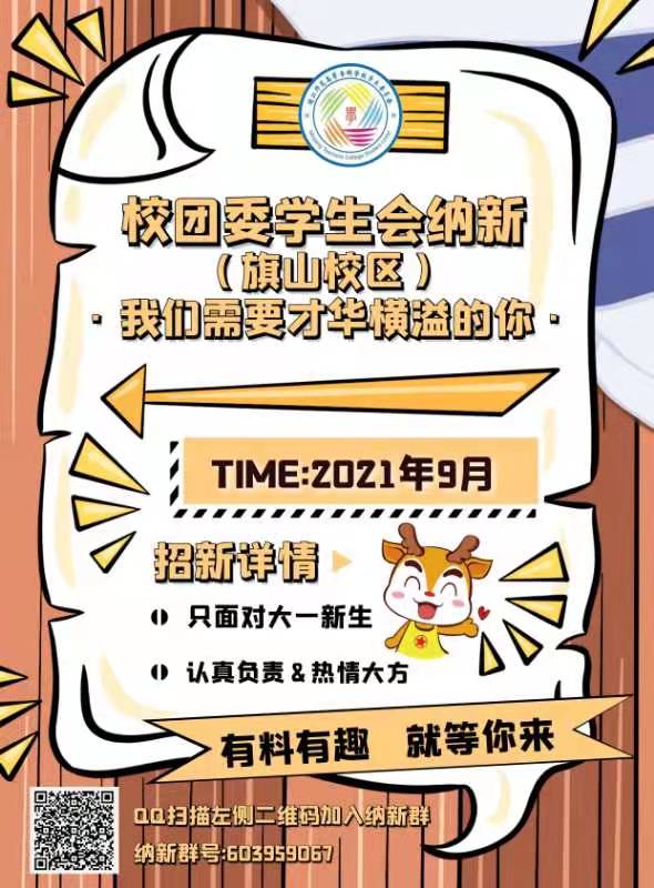 为了加强我校学生干部队伍建设工作,为学生会的发展提供坚实的后盾。2021年9月份,我校团委学生会面向我校21级新生积极开展纳新工作。