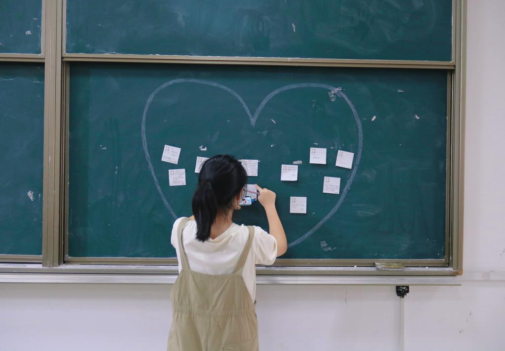 本次活动以线下形式开展,同学们拿出笔,在便利贴上写下对父亲内心深处的话,并定下努力学习的目标,再将写好的便利贴拍照发给父亲。活动结束后,黑板上已经贴满了同学们对父亲“最想说的话”,这些感谢的话不仅在黑板上留着,也在深深铭记在同学们的心里。