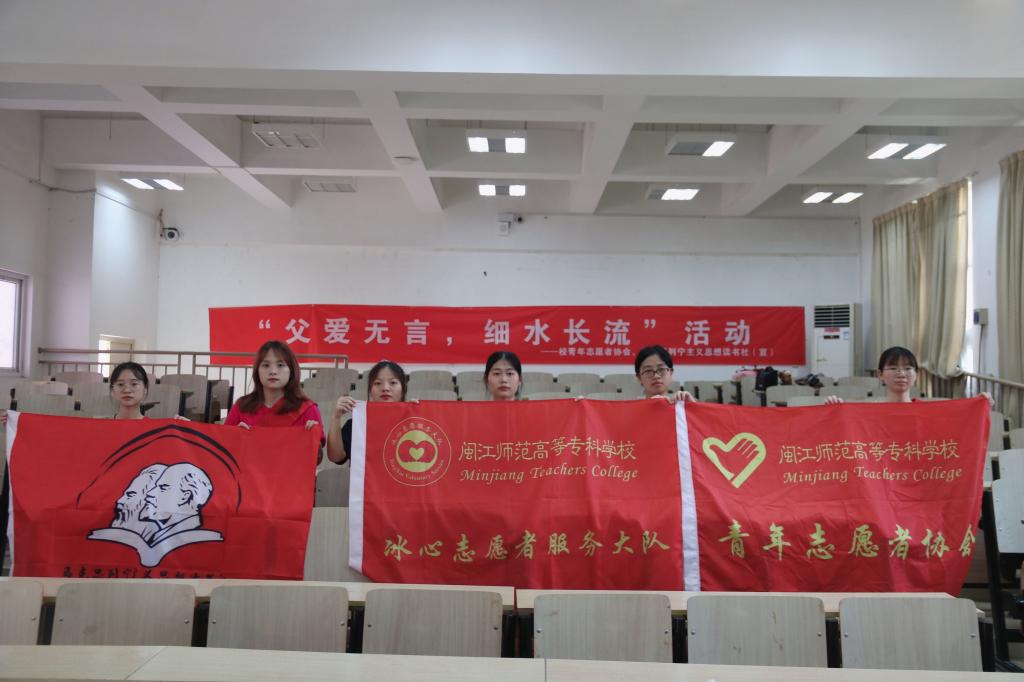 为进一步加强我校社会主义核心价值观教育,让同学们理解父亲伟大的爱,懂得如何感恩。6月18日中午,由我校团委主办,校青协、马列读书社、冰心志愿者服务大队协办的以“父爱无言,细水长流”为主题的致敬父爱活动在旗山校区1015教室成功举行。