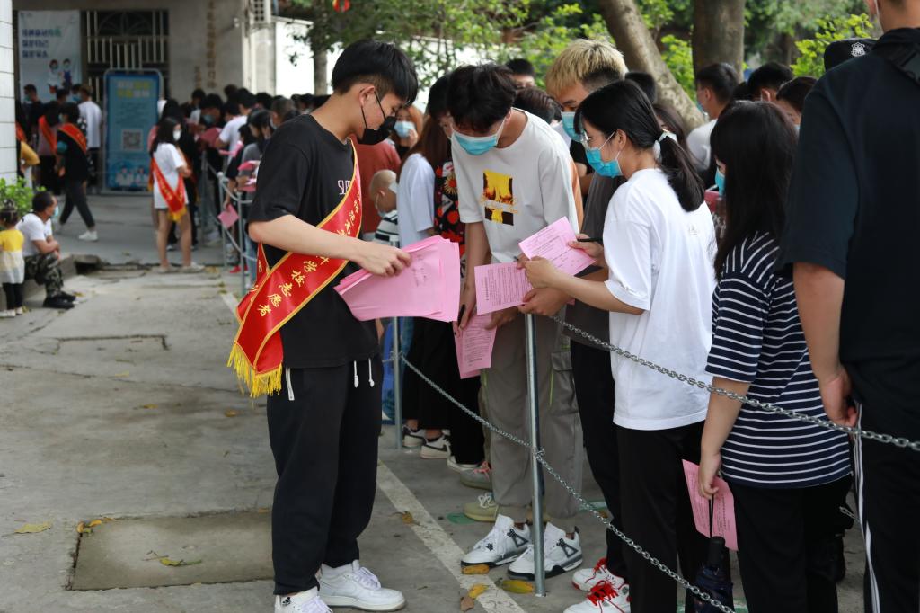 志愿者们在城门镇接种点接受岗位培训后,迅速投入紧张而繁忙的服务保障中,他们以严谨细致的工作作风和认真负责的工作态度,成为了疫苗接种现场一道亮丽的风景线。在志愿服务过程中,我校学生志愿者以饱满的热情投入到疫苗接种志愿服务工作中,帮助更多师生和居民顺利接种新冠疫苗。同时向大家介绍疫苗接种相关知识,协助医护人员耐心解答接种者的困惑,引导居民主动去往接种点接种疫苗。
