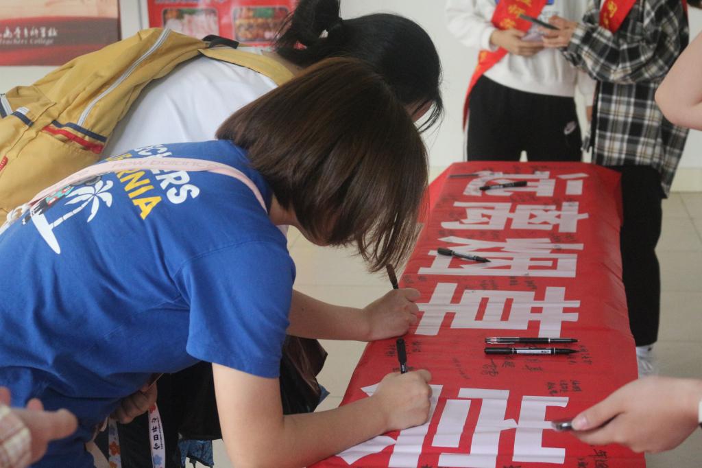 本次活动分为线上形式和线下形式开展。通过线上形式招募志愿者,围绕“远离烟草,崇尚健康”主题制作科普宣传作品,传播吸烟对身体的危害;通过线下形式,组织同学们在食堂门口的横幅写下关于禁烟的宣传标语并签下自己的姓名,激发同学们对于禁烟的重视爱惜身体,远离烟草。