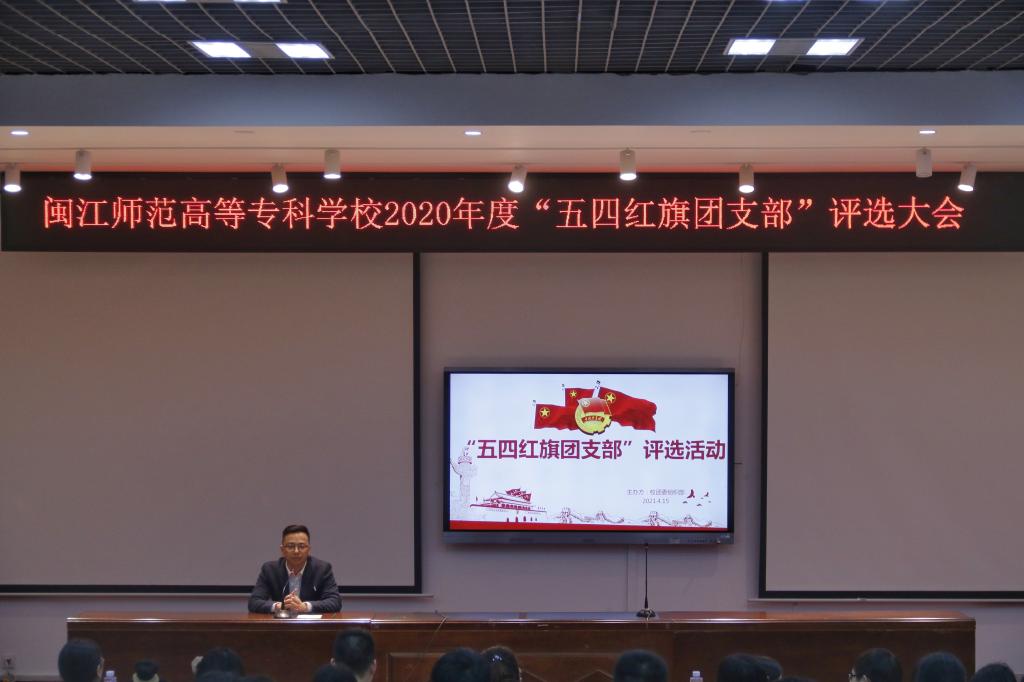2021年4月15日晚18:30,由闽江师范高等专科学校校团委主办的“2020年度五四红旗团支部”评选大会于教学楼2018教师举行。校团委王海波、廖素梅、林彬老师及各系团委负责人出席本次活动,会议由校团委兼职副书记苏成萍主持。