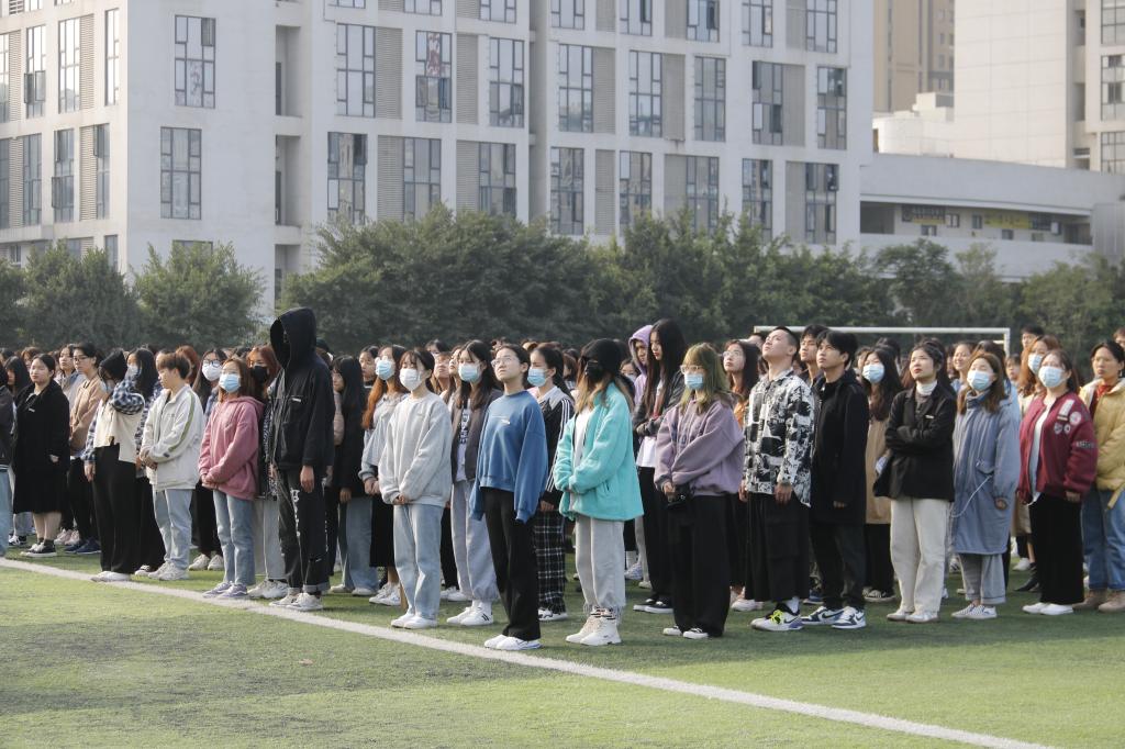 上午九点整,国旗护卫队齐步出场,以崇高的敬意护送国旗,伴随着雄壮的国歌声,在场师生以饱含深情的目光注视鲜艳的五星红旗冉冉升起;之后,在全体师生的哀思中国旗缓缓降下。全体人员默哀三分钟,表达对遇难同胞和先烈的深切缅怀,同时警醒自己要铭记历史,勿忘国耻,积极进取,奋发图强。