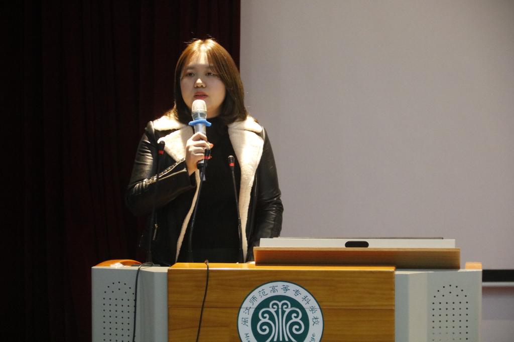 活动开始,主持人介绍了本次比赛的规则;随后,参赛选手按序号依次上台演讲,选手们通过PPT、录制VCR等方式结合演讲,给现场观众展示了别开生面的演讲;活动的最后,李娟老师和林彬老师分别对参赛选手表现给予点评。经过一番激烈角逐,最终20美术教育3班翁泳楠获得一等奖,20语文教育3班林淇至、20全科教育1班陈艺容获得二等奖,20语文教育1班张莉、20表演艺术1班余诗卉、20学前教育1班曹文佳获得三等奖,20全科教育3班徐妍、20综合文科潘芷虹、20学前教育5班汤小毅、20国际贸易与实务2班苗纪宏获得优秀奖。