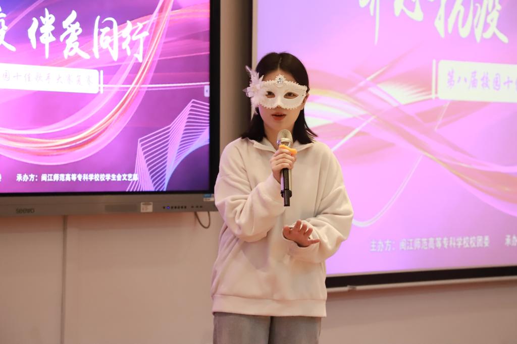 由校团委主办、校学生会文艺部承办的以“齐声抗疫,伴爱同行”为主题的第八届校园十佳歌手复赛于2020年11月21日在我校旗山校区教学楼2018教室举行。