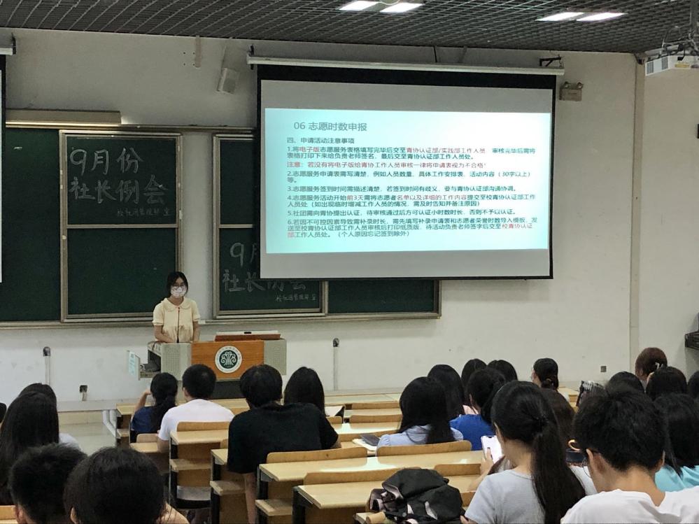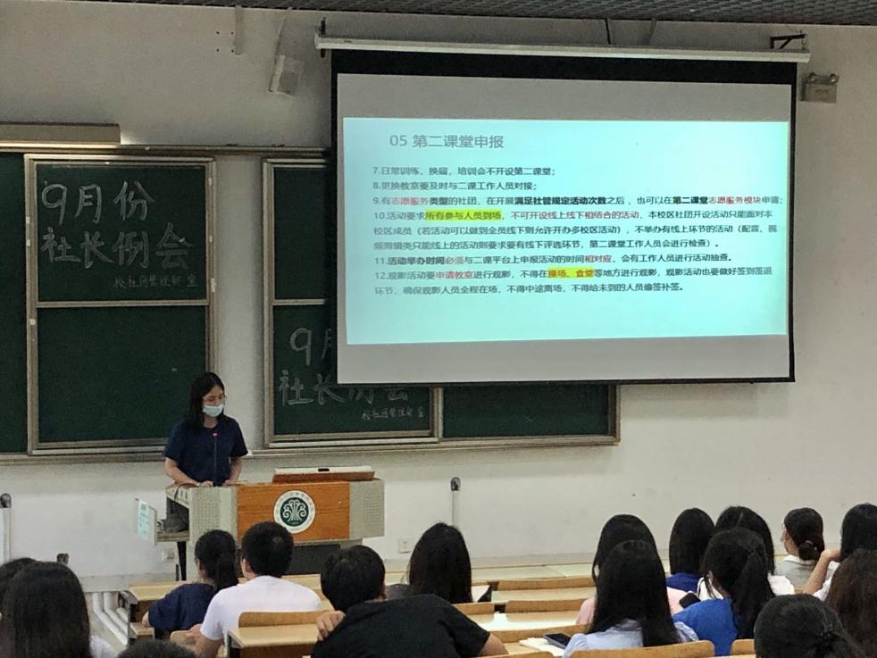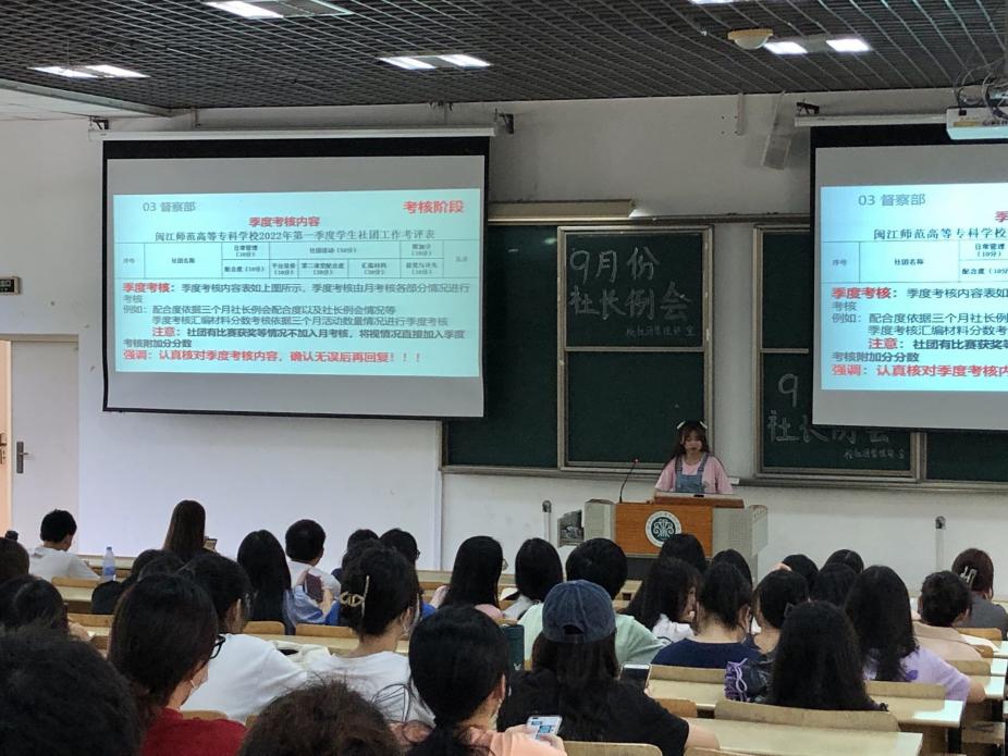为总结工作经验,妥善安排和管理社团工作。我校社团管理部于2022年9月28日在旗山校区教学楼1018教室开展社长例会,旗山校区各社团社长与副社长参加本次例会。