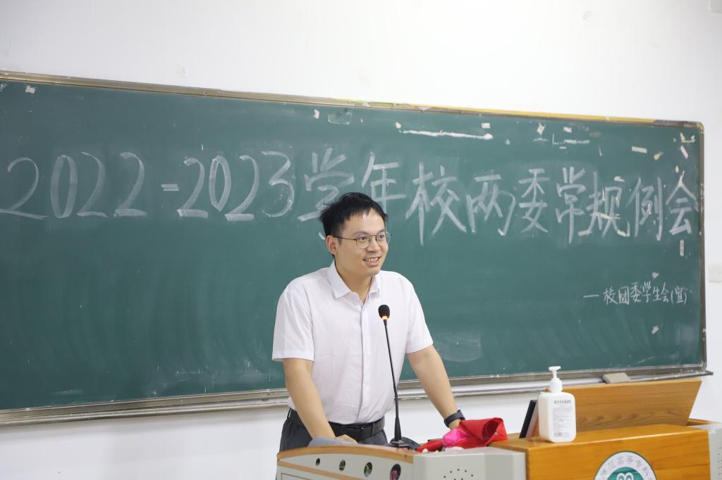 会议分为各部门汇报、主席团发言、团委老师发言三项议程。首先,校两委各部门代表进行了近期的工作总结以及下一阶段工作安排汇报,并就活动的进展情况进行同步和说明。学生会主席黄奕对近期工作内容进行了回顾和总结,并谈到学生干部在工作中要兼顾向内和向外的交流沟通,提前做好多种预案,增强突发事件的应对能力。
