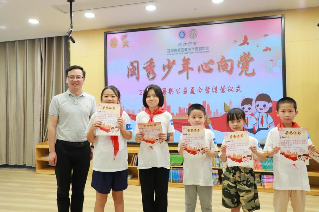 2022年7月8日,由福州高新区青少年活动中心主办的“闽秀少年心向党”暑假公益夏令营圆满结束。热闹隆重的结营仪式在中心五楼ELE绘本馆举行,闽江师专、福州高新区青少年活动中心、闽江师专附属实验小学、省教育厅等单位的领导和工作人员出席结营仪式。