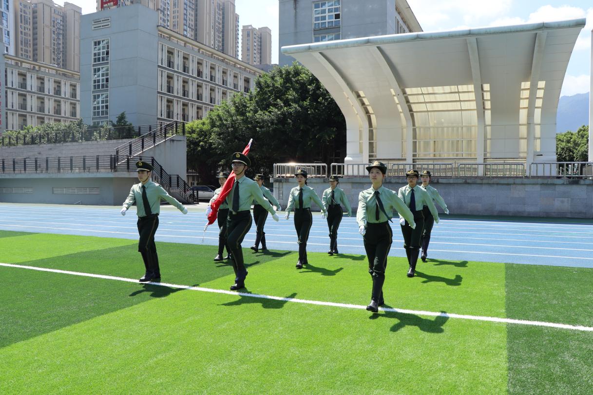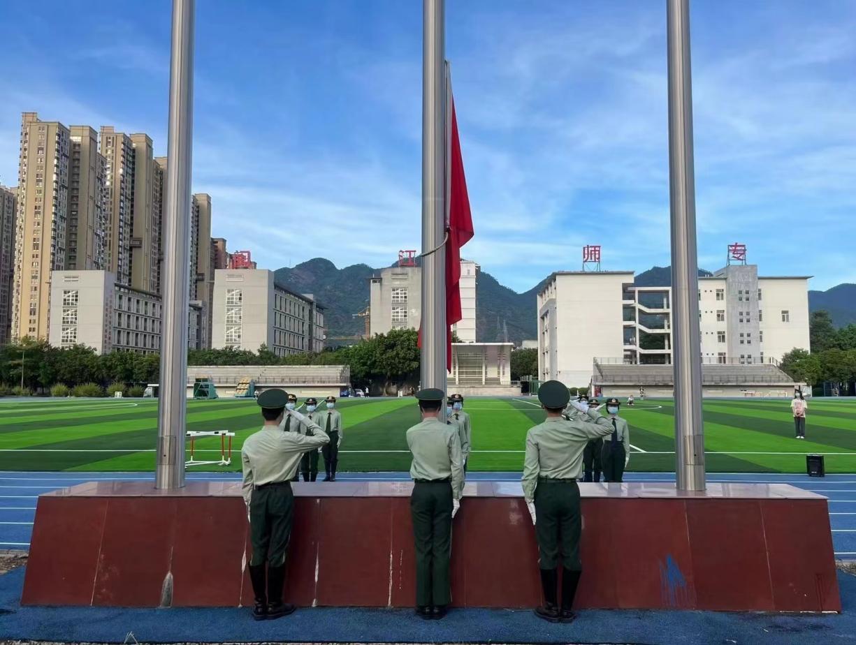为庆祝中华人民共和国成立73周年,进一步激发学生爱国热情。2022年10月1日,我校国旗护卫队于上午9时在我校操场举行“欢度国庆,祝福祖国”升旗活动。