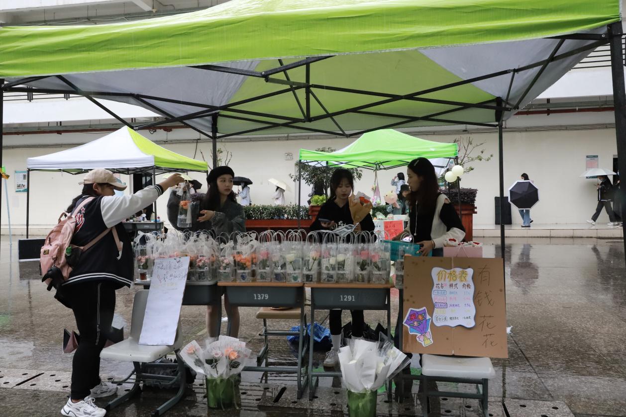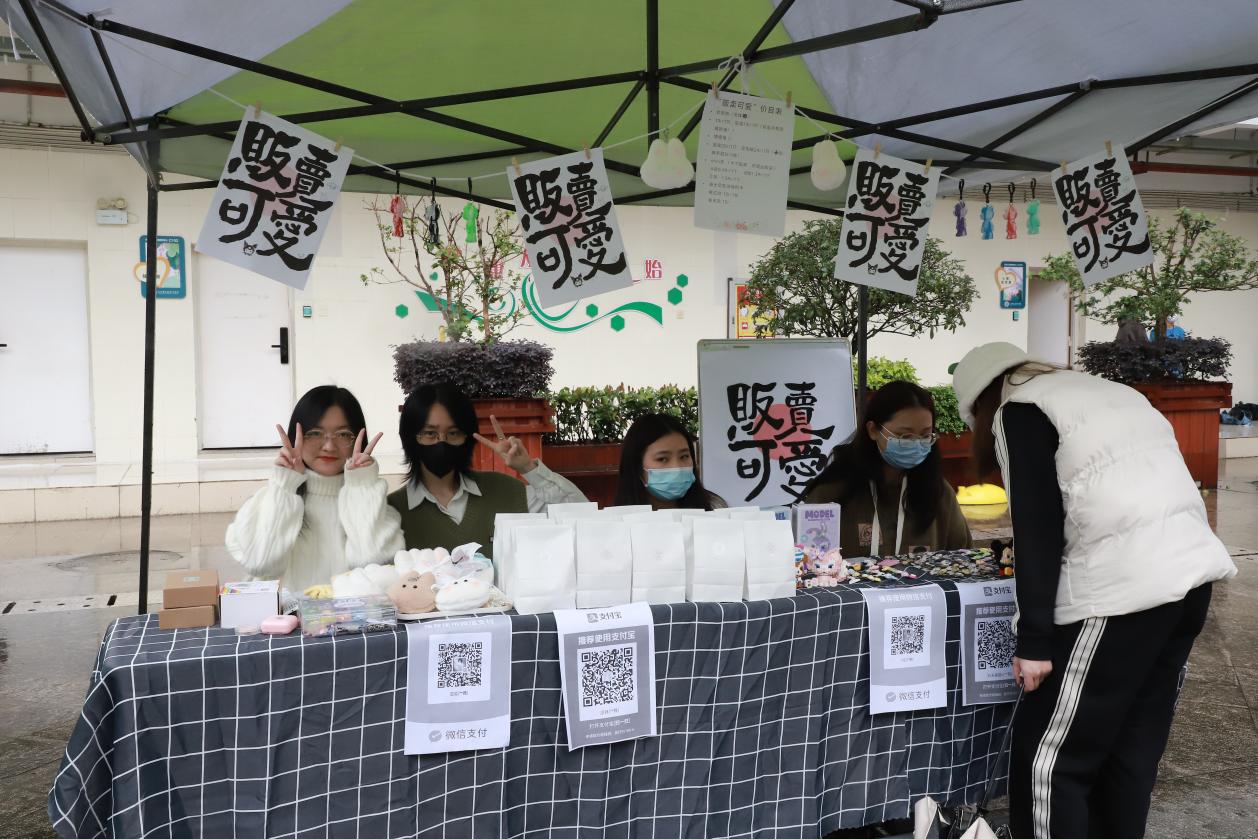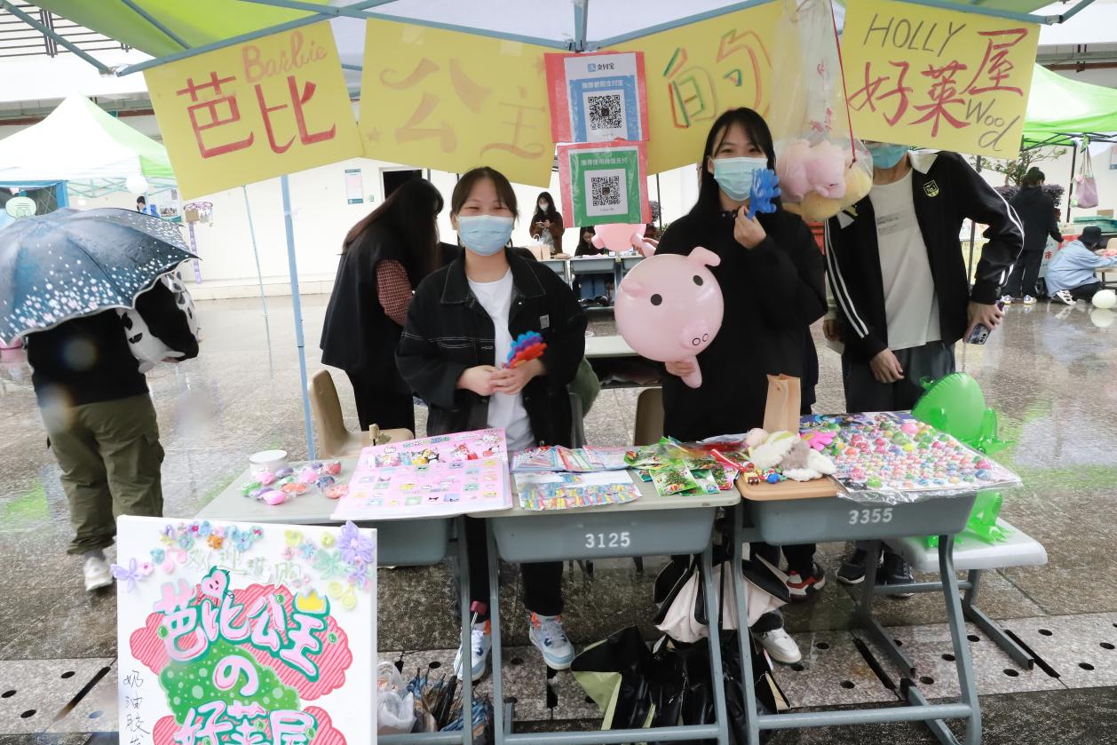 本次活动共开设了13个摊位,各摊主遵循前期报名规定,在指定摊位上有序地摆放待售物品。陈列的商品琳琅满目,应有尽有,不仅有实用的日常用品,新颖的盲盒手办,还有考验同学们动手能力的手工物件,无一不在吸引同学们驻足挑选。活动期间,欢笑声,吆喝声,交谈声在市场内不绝于耳,每个摊位前气氛活跃,热闹非凡。与此同时,由主办方带来的精彩纷呈的歌舞表演,形式多样的趣味游戏,让活动更加丰富多彩。本次跳蚤市场活动除了“自由买卖”,还设有旧衣捐赠的环节,不少同学主动捐赠闲置旧衣物,此次同学们捐赠的衣物将进行分类、整理并寄出给山区的小朋友,既有助于实现闲置资源物尽其用的目的,也让同学们在捐赠过程中体会到传递爱的快乐。
