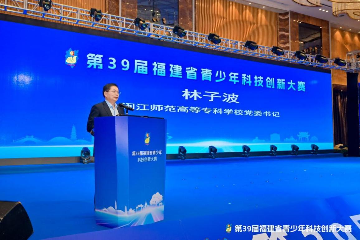 林子波在致辞中指出,科技创新让生活学习更加丰富多彩,希望同学们听党话,跟党走,热爱科学,勇于创新。闽江师专继续发挥专业和人才优势,深化科技创新教育,为更多热爱科学的青少年提供学习和展示的舞台,与大家携手推动福建省青少年科技创新事业蓬勃发展,努力为培养国家科技创新后备人才贡献力量。
