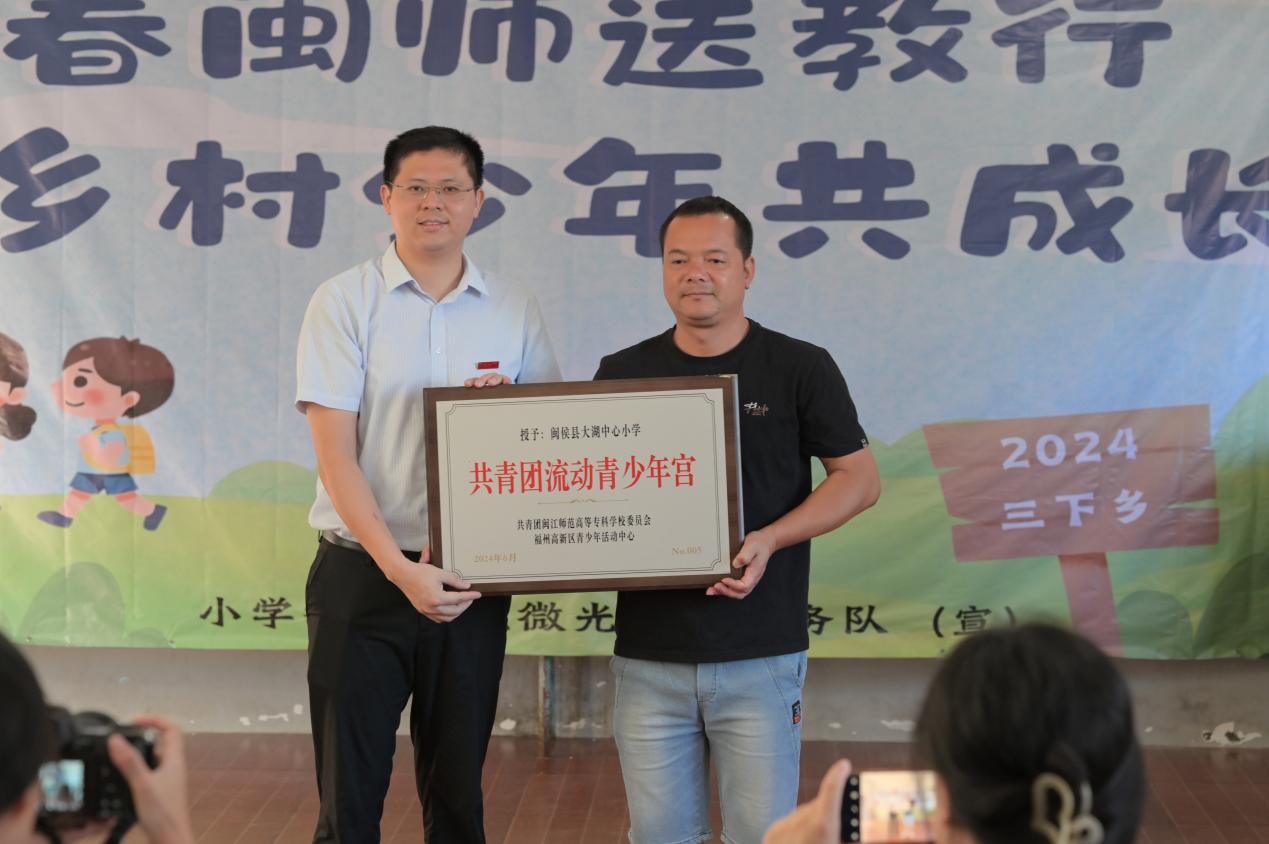 现场,校团委向闽侯县大湖中心小学授予“共青团流动青少年宫”。目前校团委已与10家单位共建,开展“共青团流动青少年宫”项目。未来,校团委将继续向农村学校、偏远地区输送更多优质的科技教育资源,助力乡村振兴战略的全面实施,为农村地区的教育事业注入新的活力与希望。